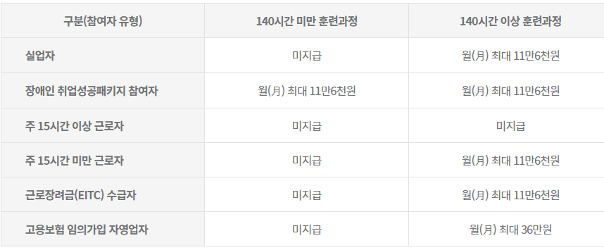 국민내일 배움 카드 신청 대상