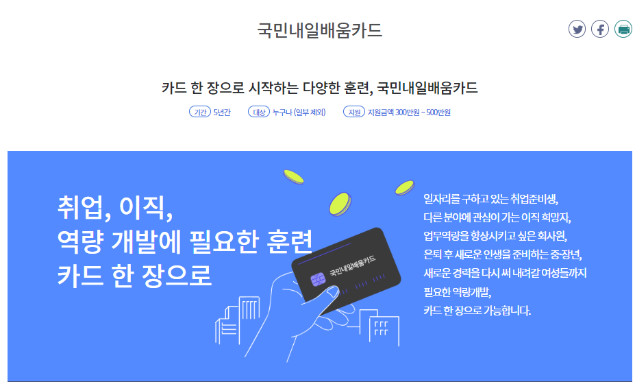 오늘은 국민내일 배움 카드 신청 대상, 신청 방법에 대해서 간단하게 알려드리겠습니다.