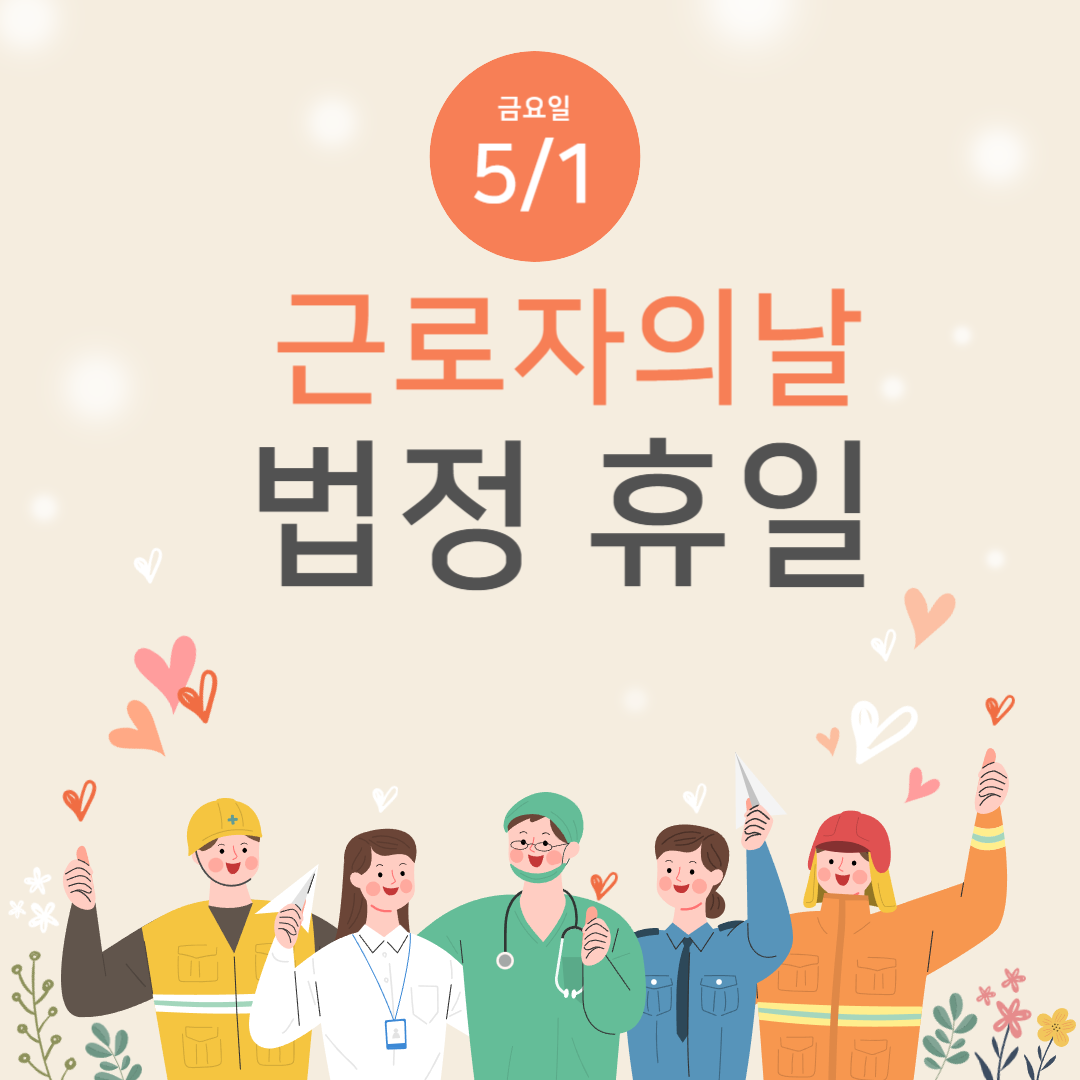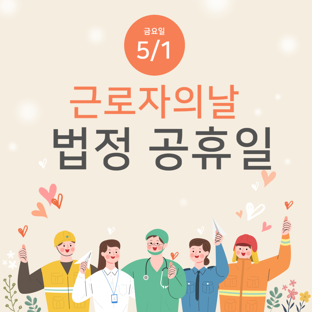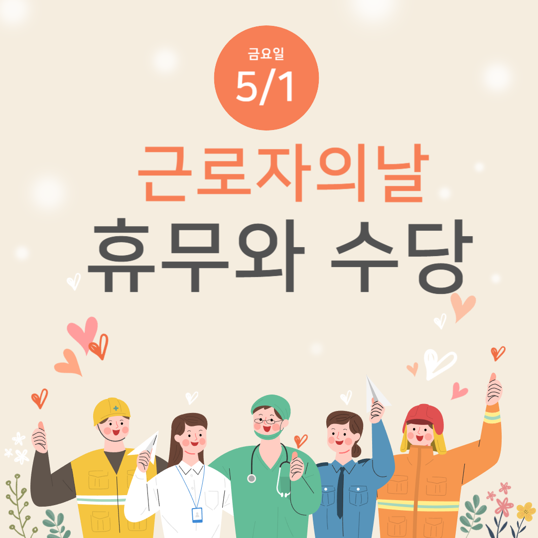 조만간 5월 1일 근로자의 날이 다가옵니다. 근로자의 날 법정공휴일, 법정 휴일 휴무와 수당에 대해서 알아보도록 하겠습니다.