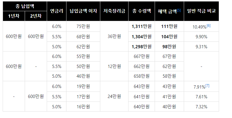 우선 청년희망적금은 기본 연 이율이 5%이고 은행에 따라 우대이율이 적용 시 최대 6%이며 세제 혜택까지 포함하며 환산하면 연 10%에 달한다. 상당히 파격적인 금리로 청년들의 이목을 끌고 있는 적금 상품이다.