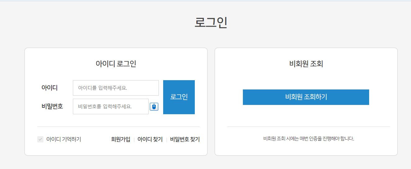 회원가입을 하셔도 이용이 가능하지만 비회원으로 접속하셔도 이용이 가능합니다. 저는 비회원으로 접속하여 조회 하는 방법에 대해서 알려드리겠습니다. 다음으로 넘어가기 위해 "비회원 조회하기" 버튼을 눌러 주시면 됩니다.