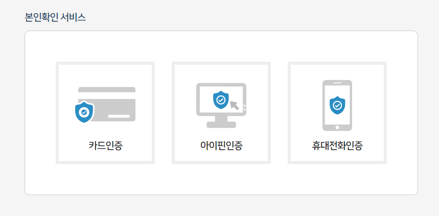 이용약관 및 서비스 이용을 위한 개인정보 수집에 대한 동의에 대한 내용이 나옵니다. 전체 동의를 눌러주고 넘어 가줍니다. 이후 개인이 원하는 본인확인 서비스를 이용하여 다음 서비스 이용을 하시면 되겠습니다. 저는 가장 편한 인증인 휴대전화 문자 인증으로 인증하였습니다.