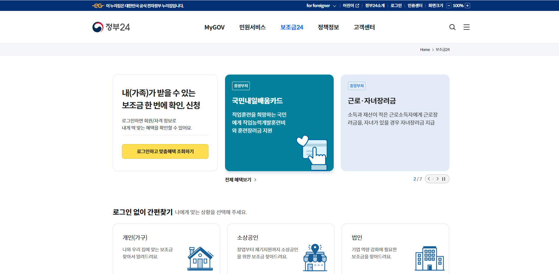 정부 지원금에 대해서 아시나요? 국민 누구나 정부 지원금을 받을 수 있는 보조금 24를 소개합니다. 청년부터 신혼부부, 노년층 까지 정부의 도움이 필요하신 분들에게 보조금을 지원받을 수 있도록 도와주고 있습니다.