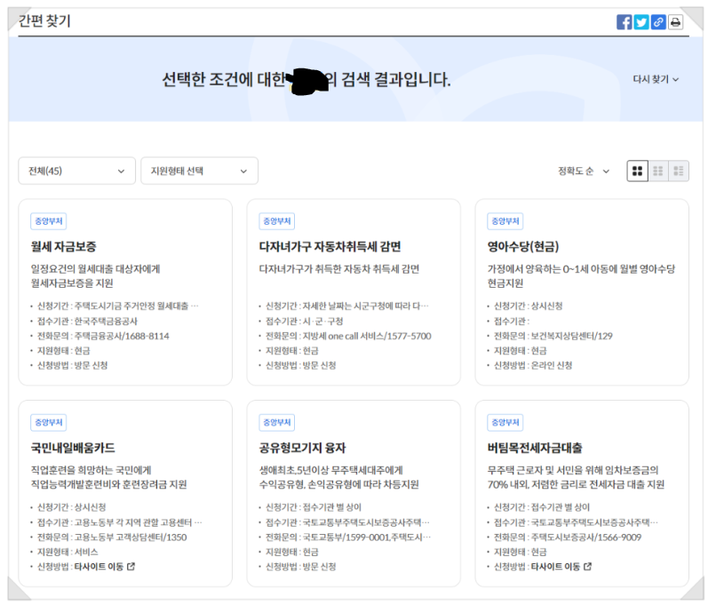 4. 자신이 선택한 정보에 따라서 나온 검색 결과 중 자신에게 맞는 지원금을 찾아 신청 기간, 접수기관, 전화 등을 확인하여 지원금 신청을 하시면 됩니다.